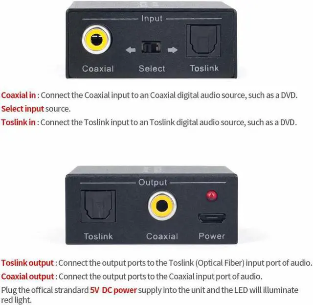2-Way Optical SPDIF Toslink to Coaxial or Coaxial to Optical SPDIF Toslink Bi-Directional Switch Digital Audio Converter
