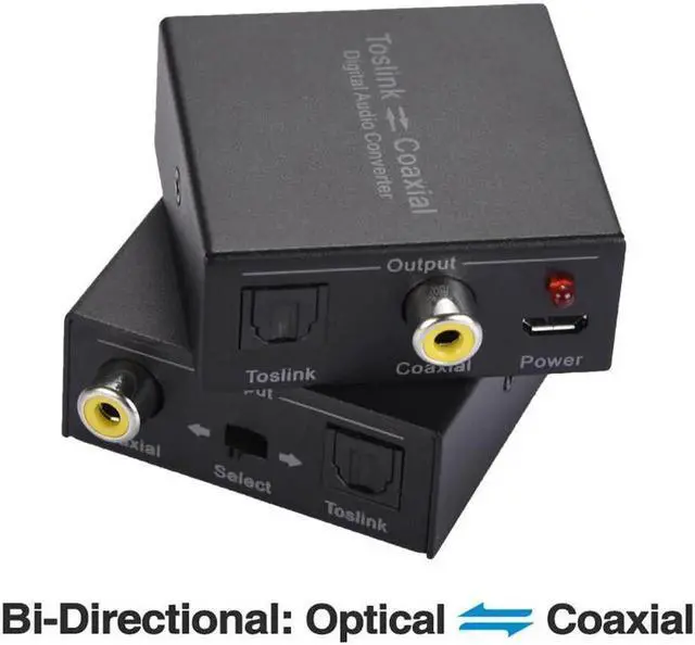 OPTICAL TO COAXIAL BI-DIRECTIONAL AUDIO CONVERTER - Switch to select either OPTICAL TOSLINK or COAX input and convert the signal (as is) to both its COAXIAL and OPTICAL TOSLINK output ports
