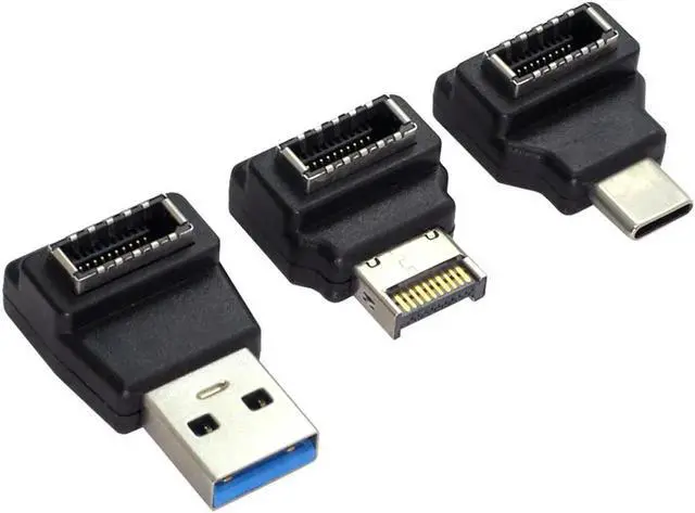 3pcs USB 3.1 Front Panel Header Female Type-E to Male Type-A & Type-C USB-C Motherboard Extension Data Angled Adapter