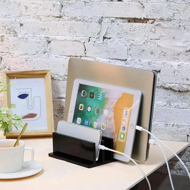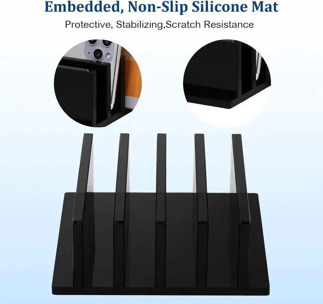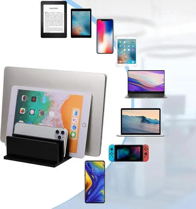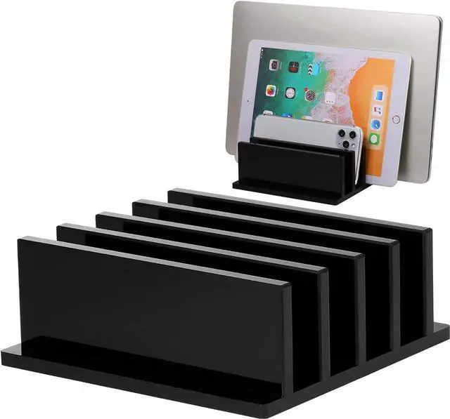You will receive: this package contains a 4-compartment acrylic laptop stand which can hold 4 laptops the same time and has a strong storage functionReliable quality: this bracket is made of acrylic safe wear-resistant drop-proof and not easy to deform; It can protect your notebook well and will not scratch your skinStrong design: the support base has a certain weight and a certain stability to ensure that the electronic equipment remains upright and safe; The electronic device will not tilt or slide when it is placed in the standSimple design: the appearance of this stand is simple and atmospheric which is in line with the aesthetics of modern people; The material allows you to see your notebook in all directions; The polished edges are smooth and round and will not scratch your deviceStrong compatibility: this 4-compartment acrylic stand is practical in use fits most laptop suitable for home office use