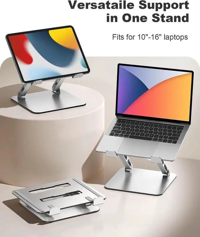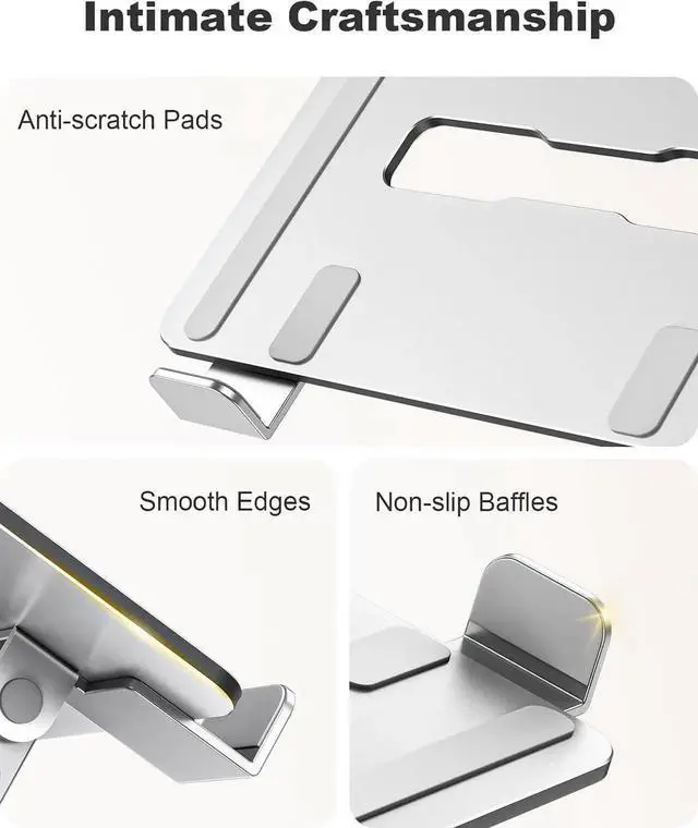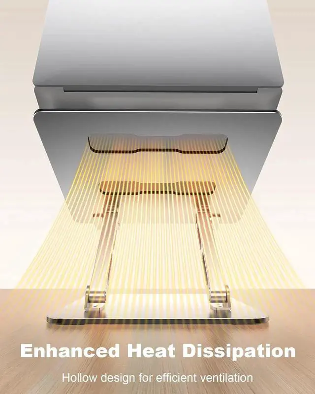 It is an indispensable assistant for programmers/designers. Compact & PortableOur laptop riser is the travel companion you've been waiting for. At just 2.3 inches thick when folded it slips discreetly into your bag/suitcase ready for your next business trip or coffee shop work session. Lighten your load without sacrificing functionality. Optimal VentilationDesigned with a large hollowed-out area our computer stand ensures superior heat dissipation. Keep your laptop performing at its best even during marathon work or intense gaming and say goodbye to overheatingUniversal CompatibleThis laptop holder is compatible with MacBook/MacBook Air/MacBook Pro/Microsoft Surface/HP/ and all other laptops from 10-16.