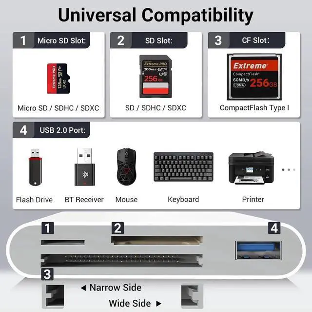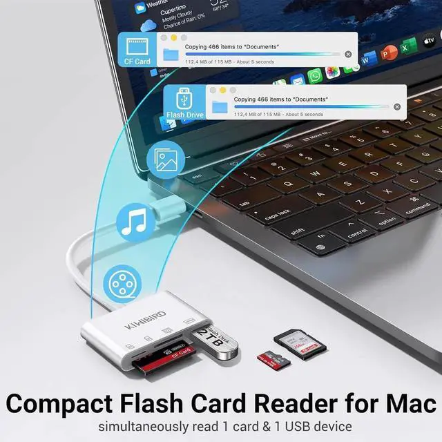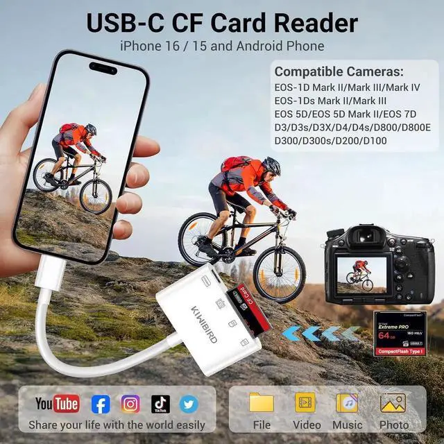 Data Transfer: Effortlessly transfer photos videos and backup data to your MacBook laptop smartphone or tablet. Compatible with SD MicroSD CF Compact Flash SDHC UHS-I SDXC UHS-I microSDHC UHS-I microSDXC UHS-I Class 10 SDHC Ultra SDXC Ultra microSDXC cards and GoPro memory cards.