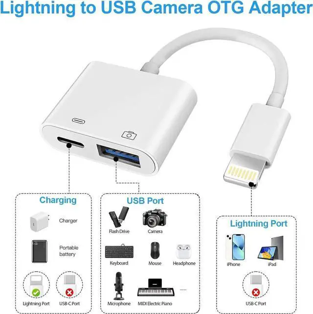 ![Main image of Lightning to USB Camera Adapter for iPhone [ MFi Certified] USB 3.0 Female Adapter for iPad with Charging Port Plug and Play OTG Converter Support Card Reader USB Flash Drives Keyboard](https://c1.neweggimages.com/productimage/nb640/C1M4S2511020M11EZFC.jpg)