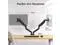 Flexible Arm Adjustment: Extend screens out 15.4 by simply pulling them closer and raise the arms up to 17.5 above the desktop by adjusting gas spring tension. Enjoy ergonomic viewing with screens that are positioned closer to eye level while freeing up valuable space on your desktop.