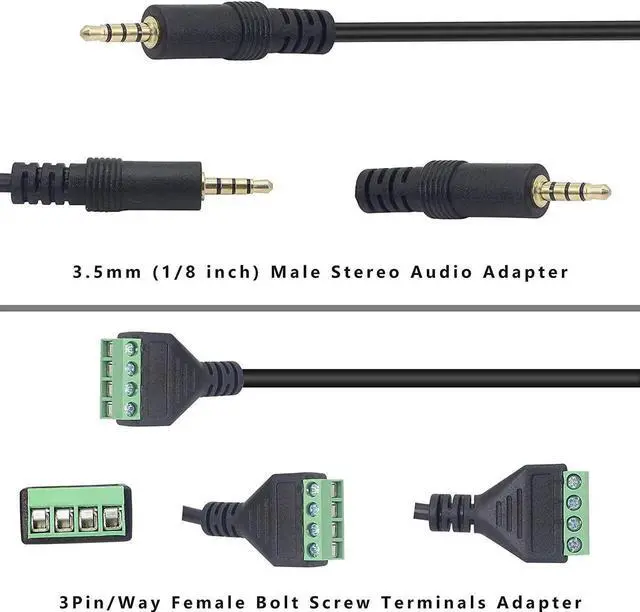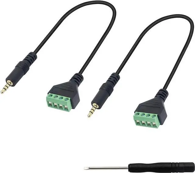 The 3.5 mm solderless terminal cable is connected with audio wire to transmit and extend audio signal. Compact design and reliable connection gold-plated plug anti oxidation oxygen free copper conductor for maximum signal transmission and durability.