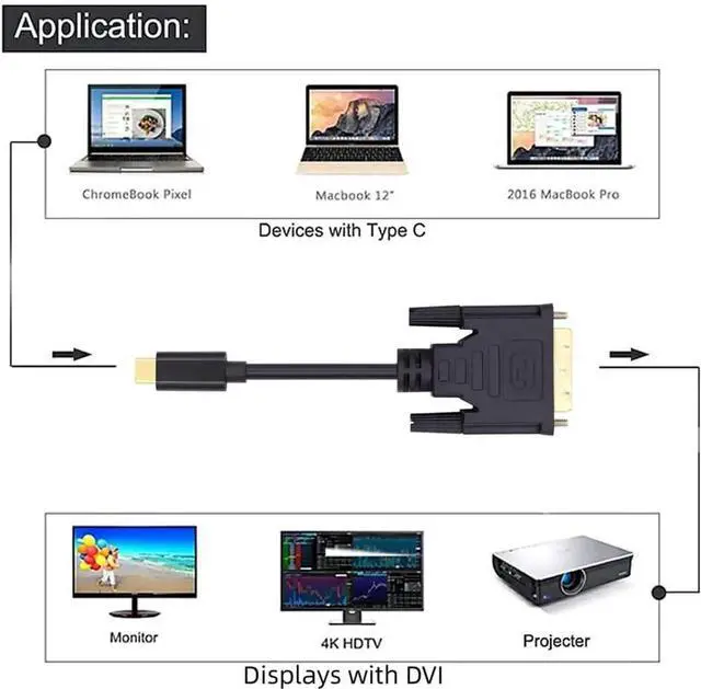 USB 3.1 Type C USB-C Source to DVI 1080P 60hz Displays Male Monitor Cable for Laptop 1.8m