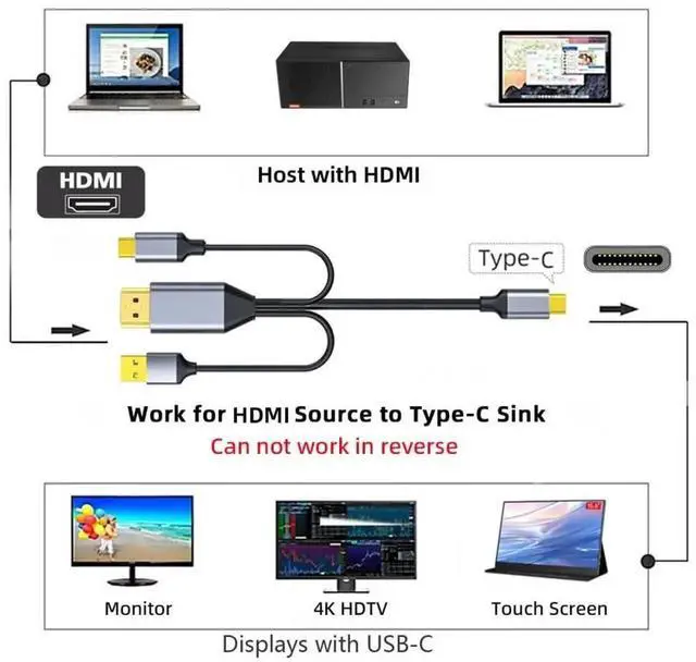 1) The cable only work for video moded and touch function, Support Type-C Touch screen. Not work for usb data mode, not work for docking, disk etc.