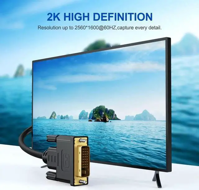 [(1080P Full HD)] This dvi cable supports video resolutions up to 1920x1200, 1600x1200, and 1080P@60Hz . High-speed digital transmission rate up to 9.9 Gbits/sec. Please Note: DVI cable does not support audio output.