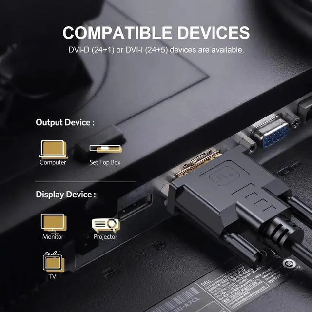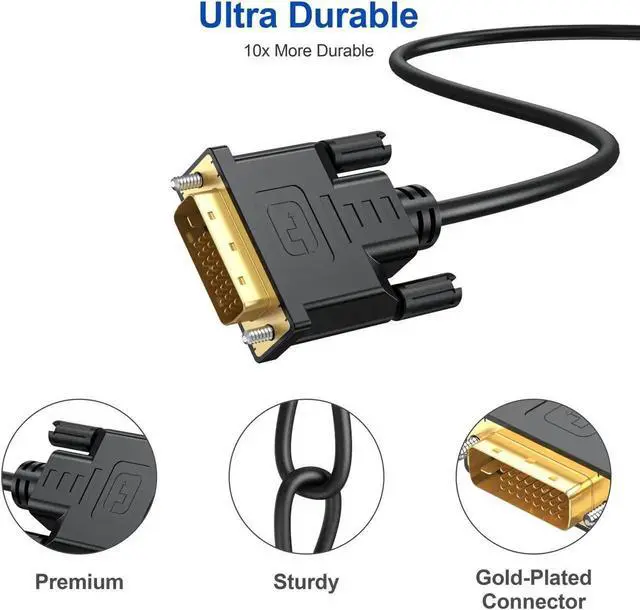 [(Stable and Safe Transmission)] This DVI-D Male to Male cable is combination of gold-plated connectors, bare copper conductors, foil & braid shielding, and integrated dual ferrite cores provides superior cable performance, static-free transmission, and noise suppression.
