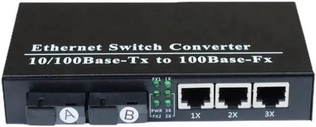 100M Fiber Optic Transceiver 2 Fiber Port 3 RJ45 Ethernet Ports Single-Mode Optical Fiber Media Converter Fiber Switch