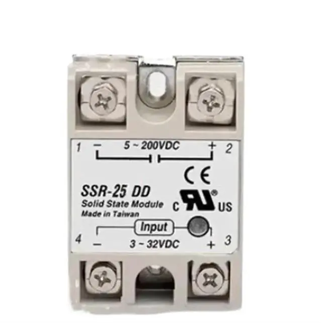 DC-DC solid state relay module includes SSR-10DD, SSR-25DD, SSR-40DD, SSR-60DD, SSR-80DD and SSR-100DD models with current from 10A to 100A. It supports 3-32V DC input and 5-200V DC output, providing safe and reliable switching for DC circuits.