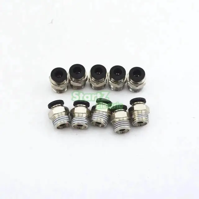 This set includes 10 straight pneumatic quick fittings with 6mm push-in port and 1/4" male thread.