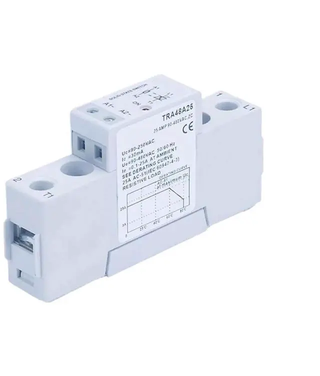 TRA48A25 is a 25A mini solid state relay module with ACAC control. It supports 90250VAC input voltage and drives 90480VAC load, providing safe and reliable switching for various AC power equipment. Ideal for industrial control, household appliances, temperature control systems and power regulation.