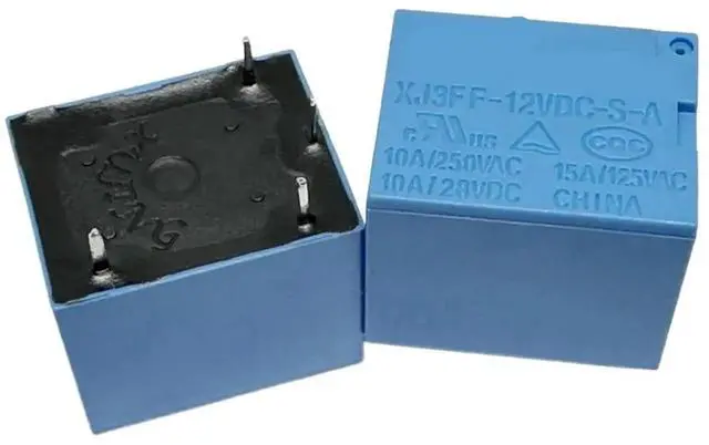 This listing includes 1 piece of XJ3FF series relay, available in XJ3FF-5VDC-S-A and XJ3FF-12VDC-S-A versions, also known as T73A-10A. It is a 4-pin DC power relay with a blue housing, commonly used in household appliances, small control equipment, power modules and circuit board maintenance. Each unit is fully tested to ensure normal operation.
