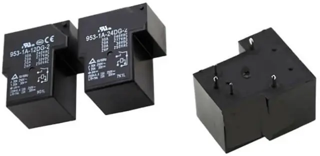 This is a 2-piece set of 953 series 30A 5-pin power relays, models 953-1A-5DG-2, 953-1A-12DG-2, and 953-1A-24DG-2. They are widely used in automotive circuits, control modules, and electrical equipment. Each relay is tested to ensure reliable switching and long-term durability.