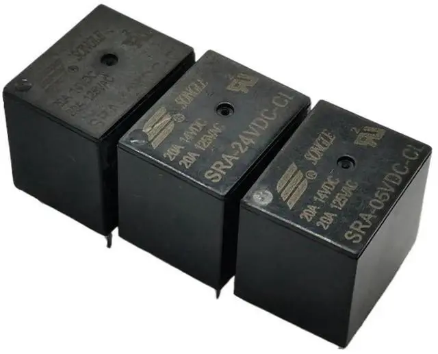 This package includes 5 pieces of SRA series industrial relays, compatible with 5VDC, 12VDC, and 24VDC models. Designed in T74 standard size, they support 20A load with 4-pin and 5-pin configurations.