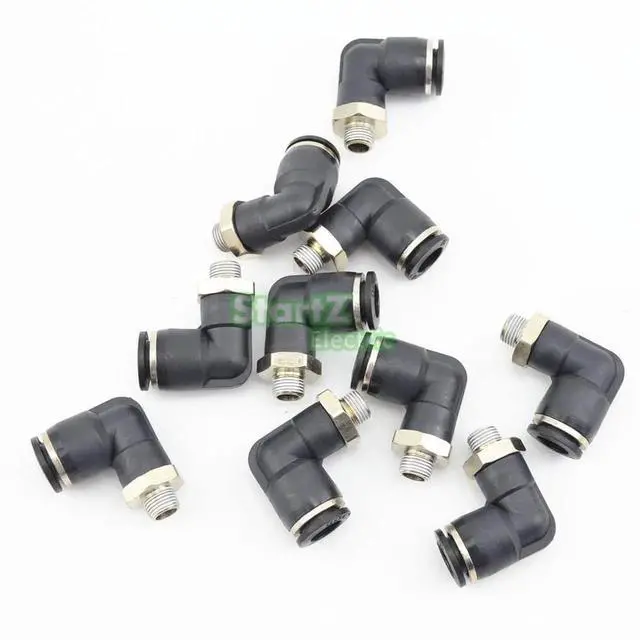 This set includes 10 pieces of 90° male elbow pneumatic push-in fittings, suitable for 12mm outer diameter air hose with 1/8" male thread. Easy to install without tools, provides reliable sealing for air lines, air compressors, pneumatic tools, and automation equipment.