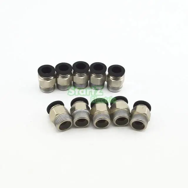 These straight pneumatic push-in fittings connect 10mm outer diameter tubing to 3/8" male thread.
