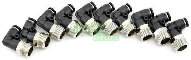 This set includes 10 pieces of pneumatic male elbow fittings with 6mm tube connection and 3/8'' male thread. Designed for air tubing systems, the 90° elbow structure allows efficient and neat pipeline layout in tight spaces. The push-to-connect design enables tool-free installation, while the reliable sealing structure prevents air leakage. Suitable for air compressors, pneumatic tools, automation equipment and various air pipeline installations.