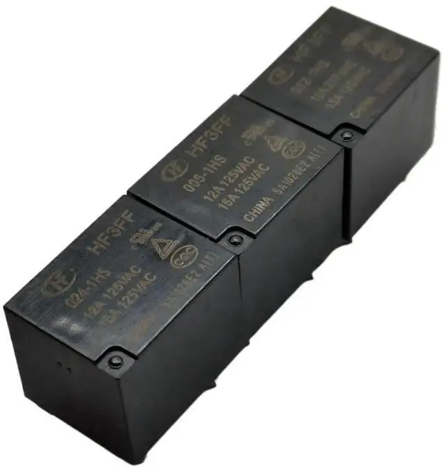 This set includes 5 pieces of general-purpose power relays from the JQC-3FF (HF-JQC-3FF) series, available in 5V, 9V, 12V, and 24V DC versions with 1HS (normally open) or 1ZS (changeover) contacts. This model is JQC-3FF-005-1HS with a 5V DC coil and 4-pin layout. Featuring reliable switching and strong compatibility, it is widely applied in DIY circuits, time relays, small appliances, and electronic control systems. Each unit is tested for stable performance.