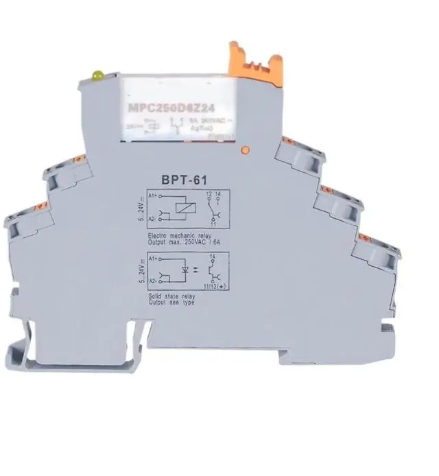This MPC250D6Z24BP-61 industrial relay module features spring-type terminals for fast and reliable wiring. With a 24V DC low-current input and 6A high-power relay output, it provides safe isolation and switching for industrial control circuits. Its plug-in structure simplifies installation and replacement, making it ideal for use in control cabinets, automation systems, and electrical equipment.