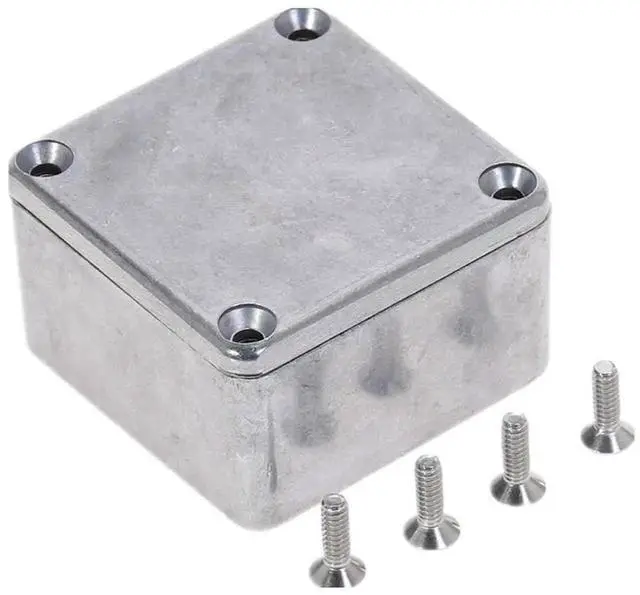 This silver aluminum diecast enclosure in model 1590LB provides a sturdy and professional housing for small electronic projects, effect pedals, stompboxes, modules and custom circuits. Made of high-quality aluminum alloy, it offers great durability, heat dissipation and electromagnetic shielding to protect internal components. The compact size of 50.5×50.5×31mm fits most desktop and pedalboard setups. Its smooth surface allows easy drilling, labeling and finishing. Suitable for electronic DIY, instrument effects, sensor modules and various small device assembly.
