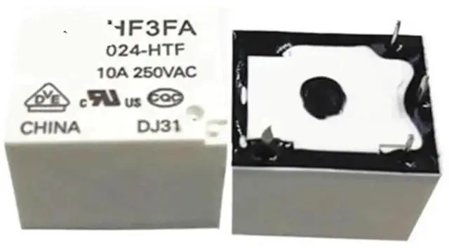 This listing includes 5 pieces of HF3FA series power relays, available in 5V, 12V, and 24V DC versions.