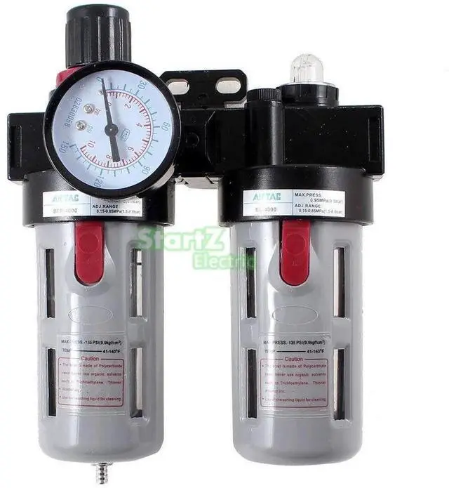 This generic BFC4000 air source treatment unit is a complete FRL (Filter-Regulator-Lubricator) combination for compressed air systems. Features G1/2" connection, 5m/40m filtration, 0.15-0.9MPa adjustable pressure with gauge display. Equipped with self-locking regulator, efficient water separation, and visual oil lubrication. Durable aluminum construction, wide 5-60°C temperature range. Perfect for purifying, stabilizing and lubricating air supply in pneumatic tools, automation lines, manufacturing equipment and compressor setups.