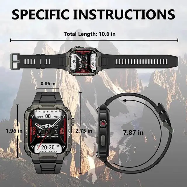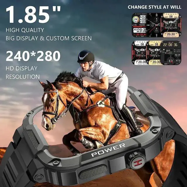 mens military rugged smart watch features a durable tactical exterior and 1.85-inch high-definition screen, delivering tough performance for outdoor adventures, daily workouts and casual wear.