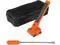 Hard plastic carrying case securely stores both units