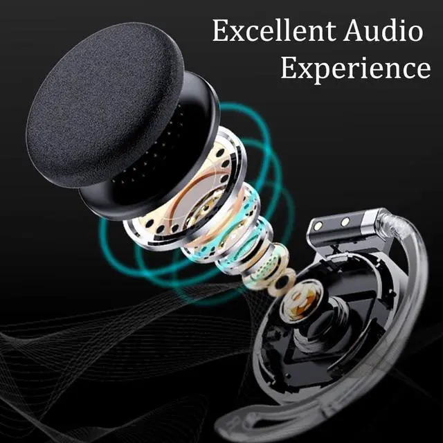 Open Ear Bluetooth Headphones & Air Conduction Headphones It can avoid wearing discomfort caused by in-ear or over-ear headphones, and keep the inside of the ear canal clean and hygienic, you can also hear the outside sound when listening music by this headpahones. This bluetooth headphone come with a 400mAh charge case, one time charge can play 5-7 hours, 2 earbuds total playing time is about 36 hours
