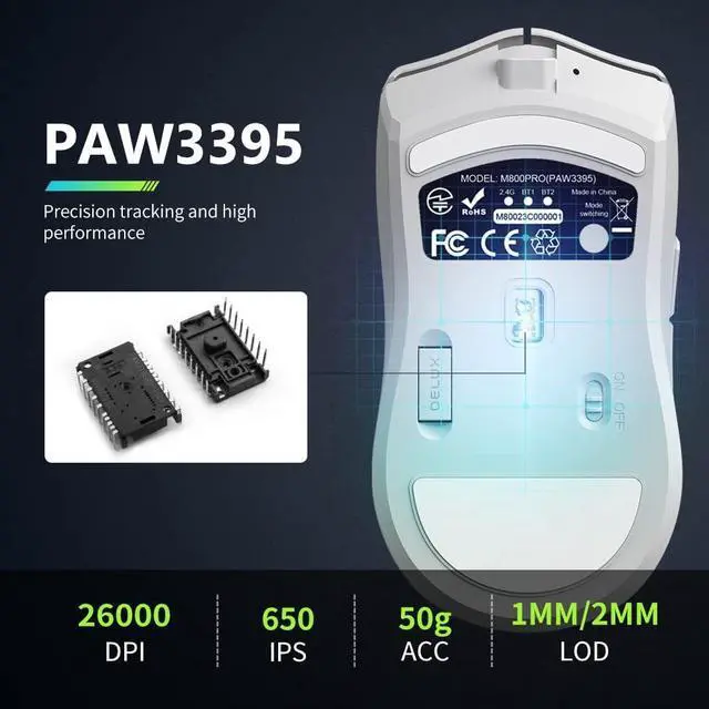 [PAW3395 Pro Optical Sensor] 26000DPI, 650IPS, 50 ACC and 1mm/2mm LOD