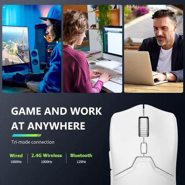 [Tri-mode Connection] Building the connection via USB-C wired (1000 Hz), 2.4G wireless (1000 Hz), and BT 5.0 (125 Hz)