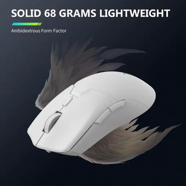 [Solid Ambidextrous Lightweight] Solid ambidextrous lightweight form factor, great for Claw and Fingertip Grip, fully and cozily grip control with its decent small, let its weight just in at ultra-light 72g