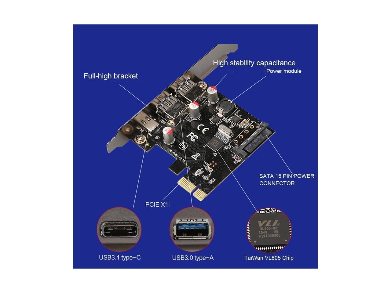 computer accessories USB 3.1 Type-C 2 usb 3.0 type-A SATA 15PIN USB header PCI-e riser Card Desktop PCI Express