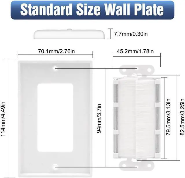 - The measurement for the brush wall plate insert holes is 3.25".
