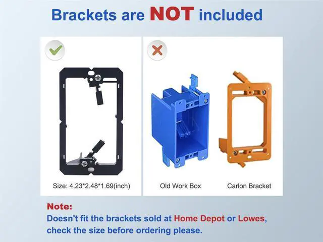 - NOTE: VCELINK brush wall plate doesn't fit old work box or Carlon bracket.