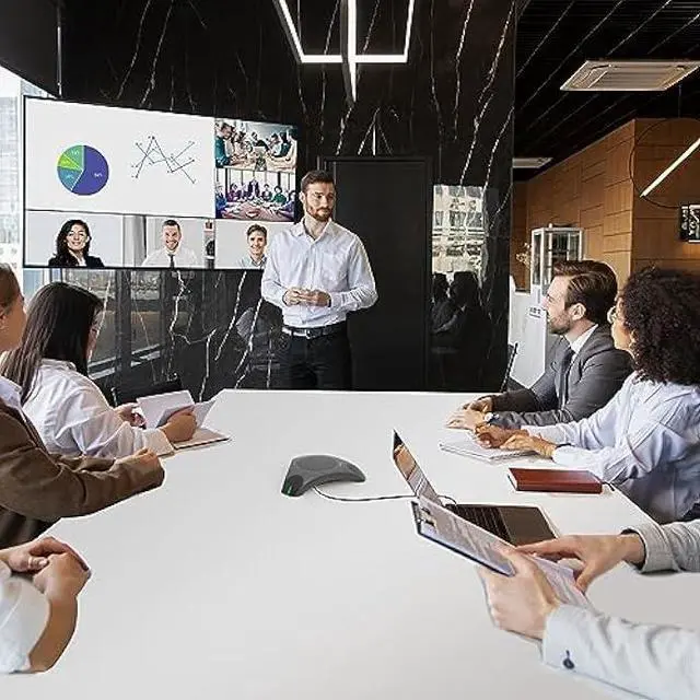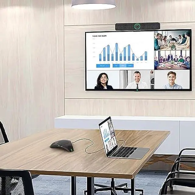 Audio Technology - Digital Signal Processing [DSP] & Automatic Gain Control [AGC] & Acoustic Echo Cancellation [AEC] & Automatic Noise Suppression [ANS]. The conference room microphone and speaker will give you a professional meeting experience.