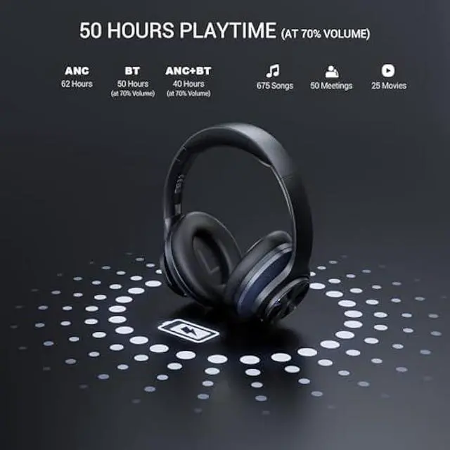 Unrivaled Battery Life: Power Through Your Day. Enjoy 50 hours of playtime in Bluetooth mode (70% volume) and 40 hours with ANC mode, ensuring seamless usage across transcontinental flights or weeklong commutes. The 5-minute quick charge delivers 2 hours of playbackperfect for last-minute plans. Designed for globetrotters and busy professionals, this endurance eliminates the anxiety of frequent recharging.