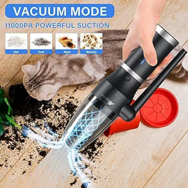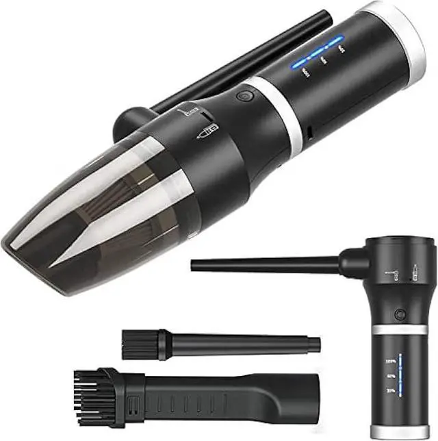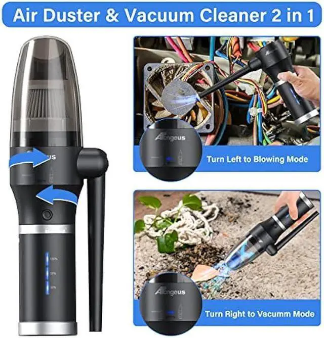 3 in1 Air Duster & Vacuum-3 in 1 DesignUpgraded 3-in-1 function can work as a air duster or a vacuum cleaner or a mobile power, You can easily switch between the air duster and vacuum cleaner by rotate the fuselage. The removable battery can charge your electronic devices anytime, anywhere. This is a Multifunction Air Duster, perfect cleaning assistant for household.