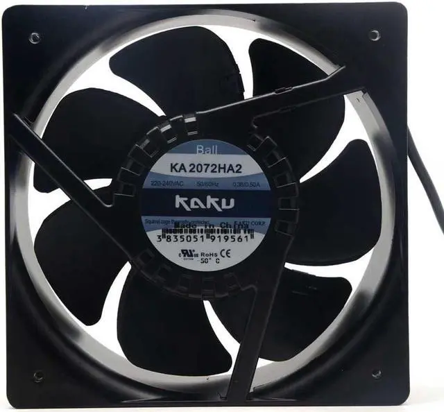 Connection mode: lead wire. Global unique Magnesium alloy frame leaf 208*208*72mm, 174mm, AC220V, Taiwan original KAKU, fan IP55 waterproof and dustproof, magnesium alloy frame and leaf, all metal structure is more resistant to high temperature. If need Insert chipconnection model please contract seller.