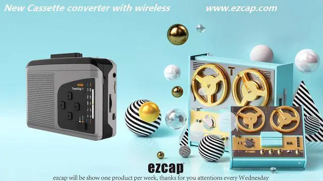 - Packaging contents: ezcap234 TapeDigi 1 cassette adapter, USB cable for power supply, instruction manual