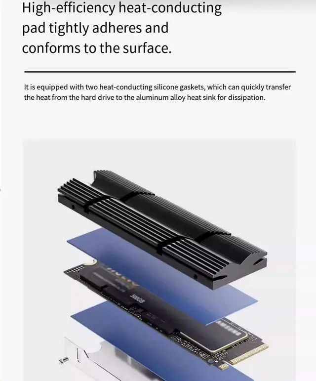 Brand: TEUCER Product Model: M. 2-9 Product Name: M. 2 SSD Cooler Product material: All-aluminum Product size: 76X 24.5X 13.5 mm. The height is the upper limit of support. Product color: Black/Silver Product packaging: Box