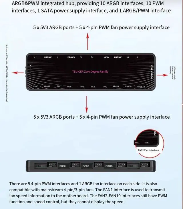 Product parameters of Zero Degree Family ARGB&PWM two-in-one Hub