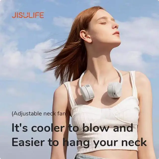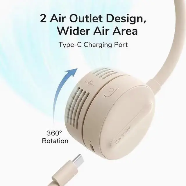 JISULIFE Portable Neck Fan 360°Adjustable Bladeless Neck Earth Brown 720° Rotating blower Four wind speeds Skin-friendly and lightweight 1800mAh