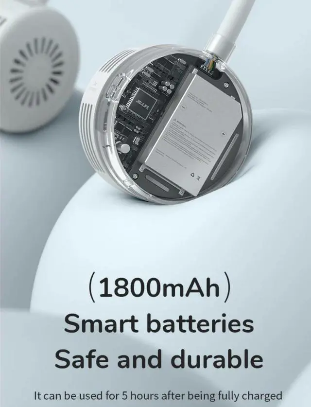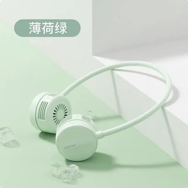 JISULIFE Portable Neck Fan 360°Adjustable Bladeless Neck Mint Green 720° rotating blower Four wind speeds Skin-friendly and lightweight 1800mAh