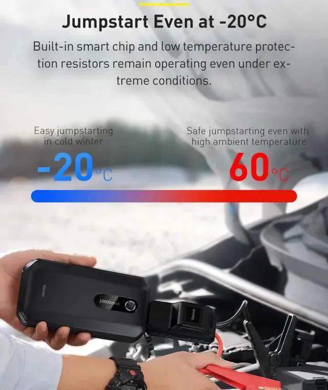 Car emergency start power supply [10, 000 mah] 4.0 gasoline / 2.5 diesel with circular battery capacity Intelligent anti-reverse insertion ignition clip