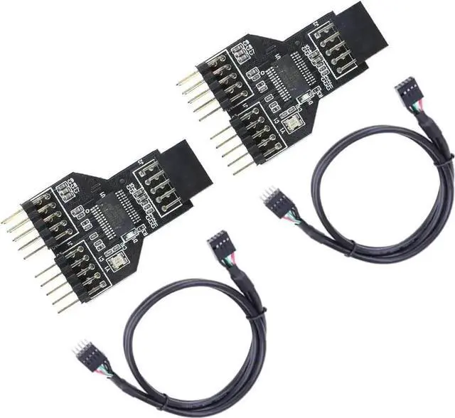 9 Pin USB Header Female 1 to 2 Male Board 9-Pin USB HUB USB 2.0 9 Pin Connector Adapter for RGB Splitter with 30cm 60cm Cable (with 30cm Cable,2 PCS)