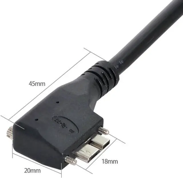90 Degree right Angled Micro USB Dual Screws Mount to 3.0 Data Cable for Industrial Camera Our newest design in USB 3.0 cables. A cable built specifically for photographers using a new camera. This cable angles giving you that natural feel when shooting tethered. It feels great, and works fantastic. In preparation for release of this item, we had several photographers test it out on their systems, and all came back with excellent reviews on it.