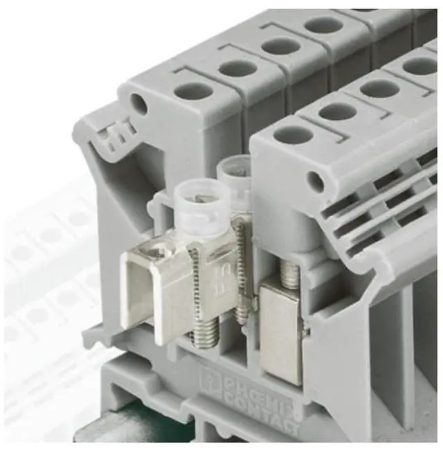 Straight-through terminal block, nominal operating voltage: 800 V, rated current: 57 A, connection quantity: 2, connection method: screw connection, rated connection capacity: 10 mm², cross-sectional area: 0.5 mm² - 16 mm², installation method: NS 35/7.5, NS 35/15, NS 32, color: gray